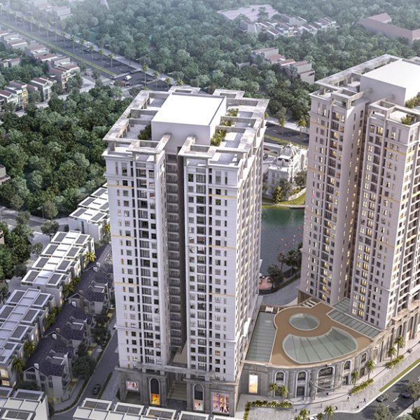 3 tòa nhà chung cư 25 tầng (2 hầm để xe, 2 tầng TTTM, tầng 3 trở lên gồm 1300 căn hộ).